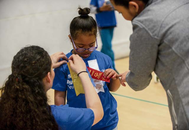 At least two volunteers for each Olympian facilitated the day’s events. Some, like Garrett, got to be a “buddy” to the Olympians, who guided and offered encouragement during each event.