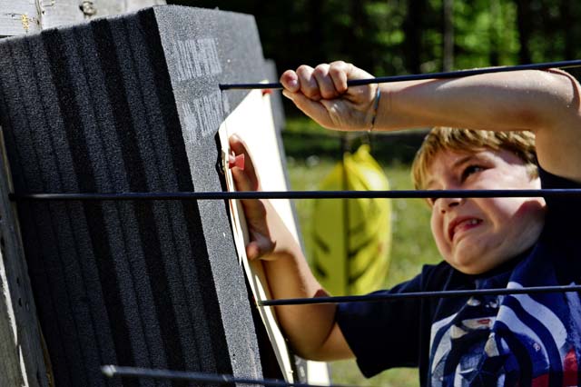 Ian, son of Tech. Sgt. Thomas Gentry, 603rd Air Operations Center air and air defense noncommissioned officer in charge, retrieves an arrow from a target during an Introduction to Archery course at the Kaiserslautern Rod & Gun Club July 29 on Vogelweh Military Complex. Students learned the art of archery using different styles of bows and arrows, sights, and weights.
