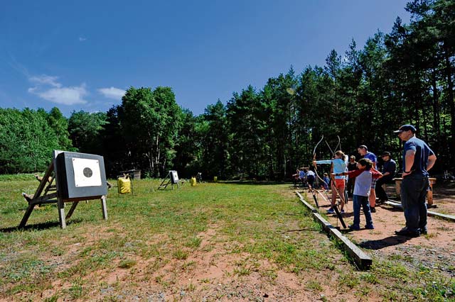 Students practice hitting targets during an Introduction to Archery course at the Kaiserslautern Rod & Gun Club July 29 on Vogelweh Military Complex.