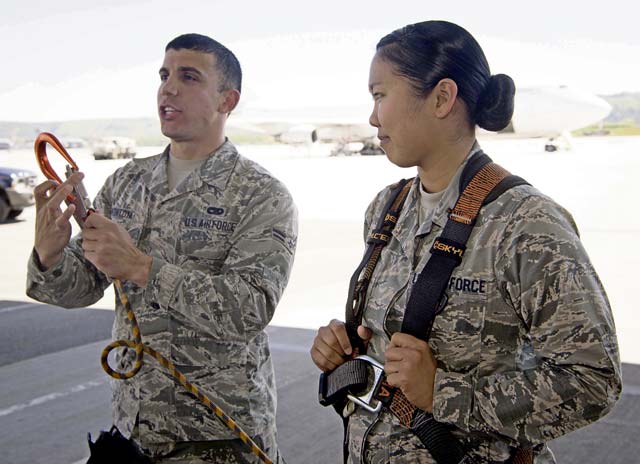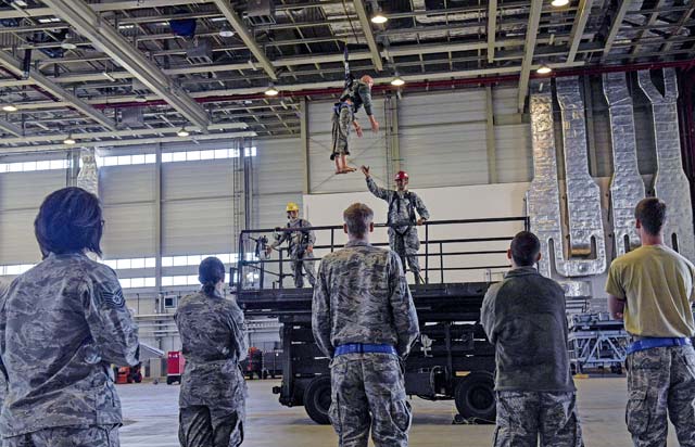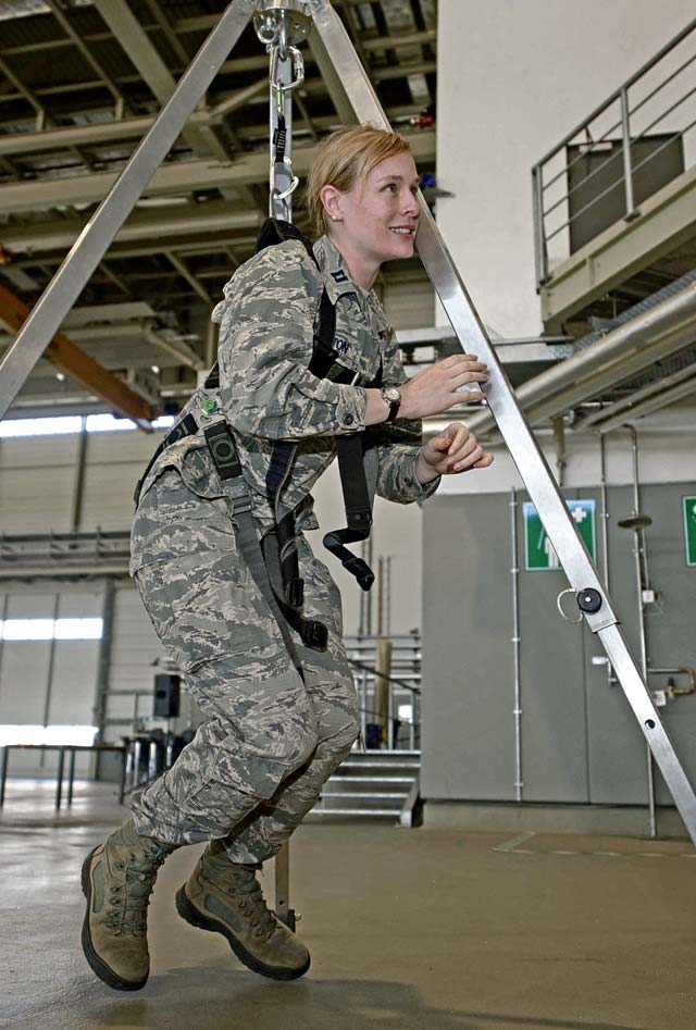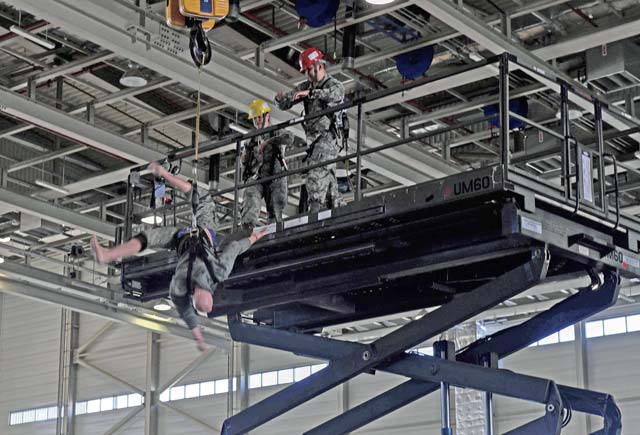 For the 721 APS, the training included how to inspect and wear safety harnesses, a fall rescue exercise and suspension training.