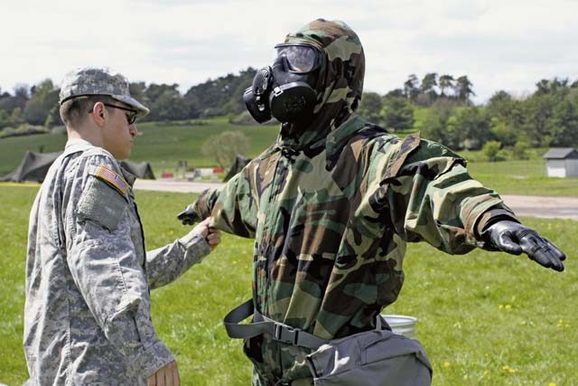 “To simulate real life scenarios we had the teams decontaminate a Patriot launcher in MOPP 4,” Pino said. “Once you get into different MOPP levels the tasks aren’t so easy.”