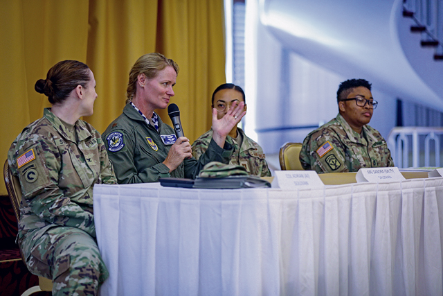 “The takeaway from today’s event should be the experiences of those women sitting at the table. The O-6 commander, the Air Force Major who’s a pilot-physician, the combat comms [communications] captain, the NCO [non-commissioned officer], they all bring diverse backgrounds and experience to the table,” said Kenfield. “I think it’s very helpful for the young leaders, Soldiers, and Airmen in the room.”