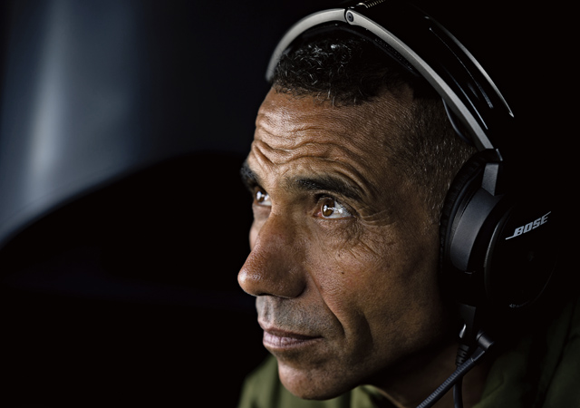 An Algerian air force pilot, assigned to the 2nd Tactical Airlift Wing, looks out the window of a U.S. Air Force C-130J Super Hercules while flying over Germany, Aug. 2. Hosting training operations offers U.S. and Algerian airmen the opportunity to learn and grow from each other’s knowledge of aircraft procedures.