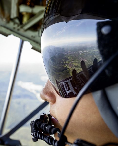 U.S. Air Force Airman 1st Class Andrea Medranda, 37th Airlift Squadron loadmaster, sits on the ramp of a C-130J Super Hercules during an all-Hispanic heritage flight while flying over Germany, Sep. 6. For Hispanic-American service members, HHM is a chance to honor their heritage and significant contributions to our nation’s history.