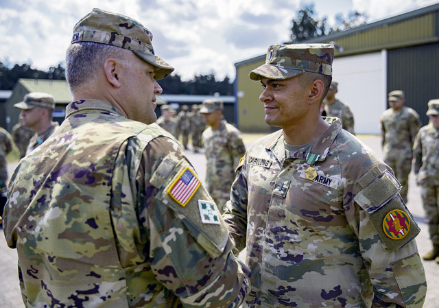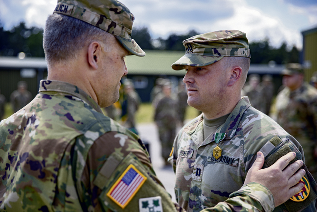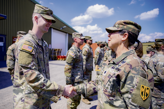 Soldiers from the 401st Military Police Company received awards from 18th Military Police Brigade Commander, Col. Chad A. Froehlich, and 709th Military Police Battalion Commander, Lt. Col. Elizabeth McGovney, Kaiserslautern, June 7.