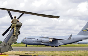 The U.S. Transportation Command directed the movement of the 82nd CAB’s UH-60 Black Hawks aboard C-17 Globemaster III aircraft into Mombasa International Airport, Kenya. With the help of the Port Dawgs, the C-130J Super Hercules aircraft were then delivered to their final destination.