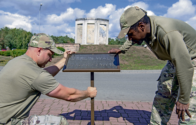A fragment of the Berlin Wall was placed at a roundabout near the Kaiserslautern Military Community Center as a memorial in conjunction with German Unity Day on Ramstein Air Base, Oct. 1.