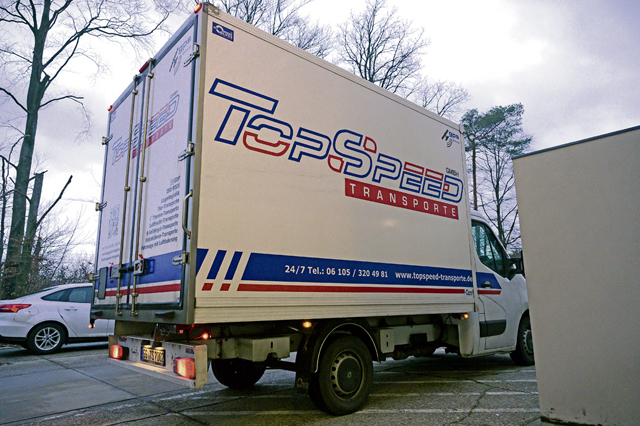 A delivery truck carrying COVID-19 vaccines sits at Ramstein Air Base, Jan. 18. This shipment is the second dose of the vaccine as part of Phase 1a of the COVID-19 prioritization plan and will primarily be distributed to first responders and select medical personnel.