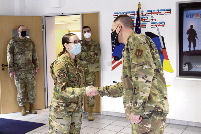 A noncommissioned officer assigned to the 86th Vehicle Readiness Squadron was recognized as Airlifter of the Week for her drive and focus in ground transportation logistics at Ramstein Air Base, March 4.
