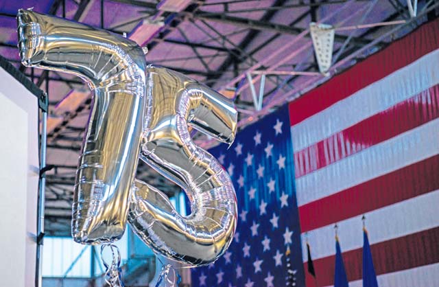 Balloons float in hangar 3 during the Air Force Gala at Ramstein Air Base, Oct. 14. This year RAB celebrated the 75th anniversary of the Air Force themed Innovate, Accelerate and Thrive… from then until now.