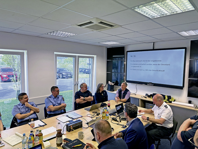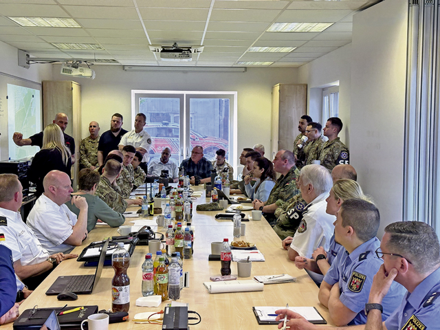 A large group of emergency management teams from the Kaiserslautern County, the U.S. Army, the U.S. Air Force and German police, met in Kaiserslautern county’s fire and disaster protection department to work their way through an extensive accident scenario. The aim of this exercise was to identify areas of improvement to allow for teams to familiarize with each other and to understand the various structures and regulations. A real-world exercise is scheduled for Sep. 28.