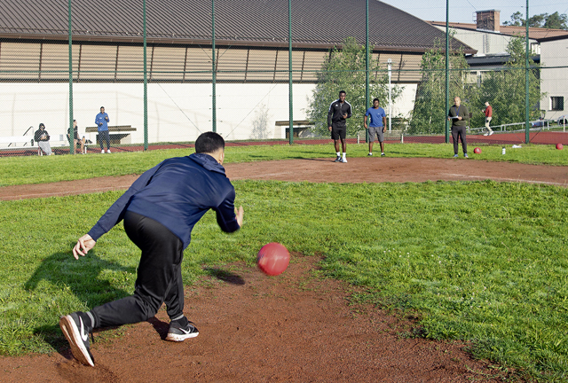 Participants of the 86th Airlift Wing Sports Day play kickball at Ramstein Air Base, Aug. 31.