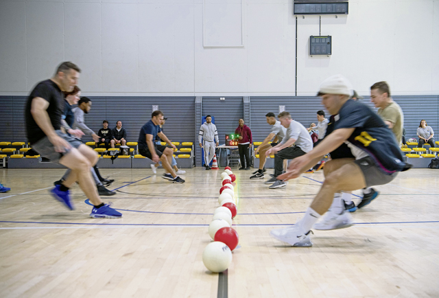 Participants of the 86th Airlift Wing Sports Day play dodgeball at Ramstein Air Base, Aug. 31. The 86th AW service members and civilians participated in various sports and competitions such as basketball, dodgeball, soccer, swimming, egg toss, flag football, and more.
