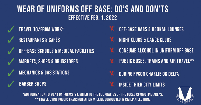 For the first time in more than seven years, Airmen and Soldiers assigned to the Kaiserslautern Military Community can once again wear uniforms off base.