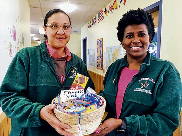 The following day, the Torch Club members delivered the baskets to the teachers at the local Child Development Centers and at the School Age Center.