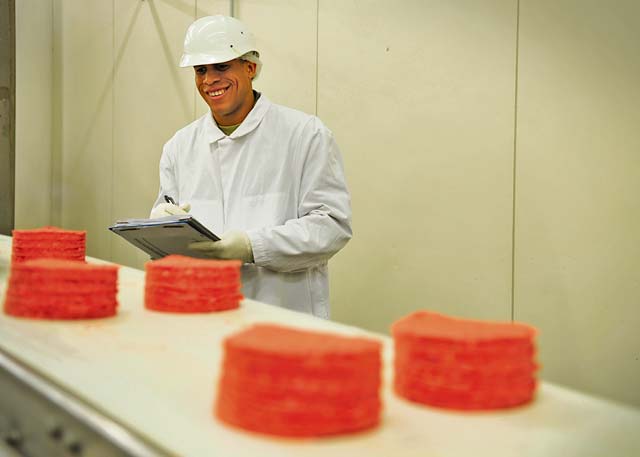 Senior Airman Allen Cherry, 86th Aerospace Medicine Squadron public health technician, inspects meat patties June 29 at the meat distribution center on Ramstein. Cherry was officially announced one of the 12 Outstanding Airmen of the Year on July 27.