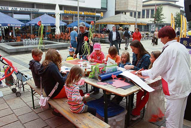 Beginning at 12:30 p.m., a local ballet studio will invite the little ones to dance with them at Altenhof, and a local dancing school will present a kid’s disco with a show and entertaining program. Children can bake with the bakery at Altenhof or watch as the bakery makes goodies for them. The miniature boat club will show off model boats, and the free kiddy train will give children free rides starting on Schillerplatz.