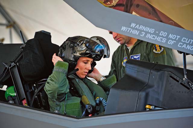 The initial flight in the F-35 training syllabus is designed to orient pilots with the physical aspects of flying the F-35 compared to other fighters they’ve flown previously, such as the F-15E Strike Eagle, F-15C Eagle, F-16 Fighting Falcon, A-10 Thunderbolt II or F-22 Raptor. Women have served in combat aviation roles in aircraft such as these as well as other aircraft for more than 20 years.