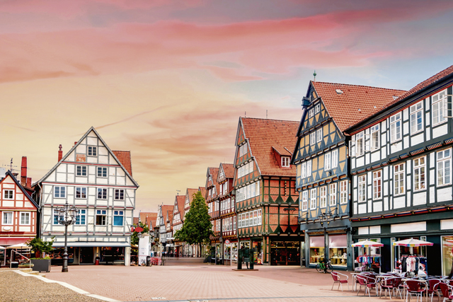 Returning to the Timber-Frame Road, to the west of Quedlinburg and south of Stade, is the village of Celle. The town is located on the Aller River, and is known for being the “gateway to Lueneburg Heath,” a nature reserve. Celle Castle dates back to 1530 and belongs to one of the oldest dynasties still in existence. The palace is known to be one of the best examples of Renaissance art in Germany.