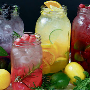 Mix/mash a sliced or cubed selection of these ingredients in a jar or pitcher and add 32 ounces of flat or sparkling water. Let it sit in the fridge for at least one hour. Finish the look with some ice cubes. Almost all fruits, vegetables and herbs (fresh and frozen) can be used, so get creative!