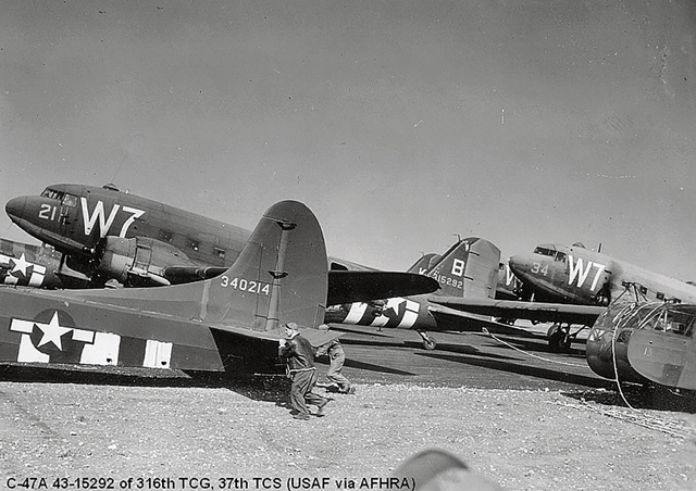 Troops were dropped over a zone near Sainte-Mère-Église, France, during Mission “Boston” on June 6, 1944, (D-Day) by the 316th Troop Carrier Group. The squadron code was W7, Nose Number 22, Tail number 43-15292, and has a direct lineage to our 37th Airlift Squadron today. Courtesy photo