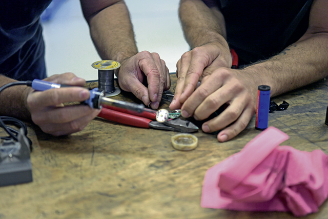 Portuguese local nationals work to repair vehicle parts at Lajes Field, Portugal, Oct. 18, 2022. The 65th Logistics Readiness Squadron is responsible for the maintenance and upkeep of the U.S. Air Force government vehicles used on base. (U.S. Air Force photo by Airman 1st Class Lauren Jacoby)