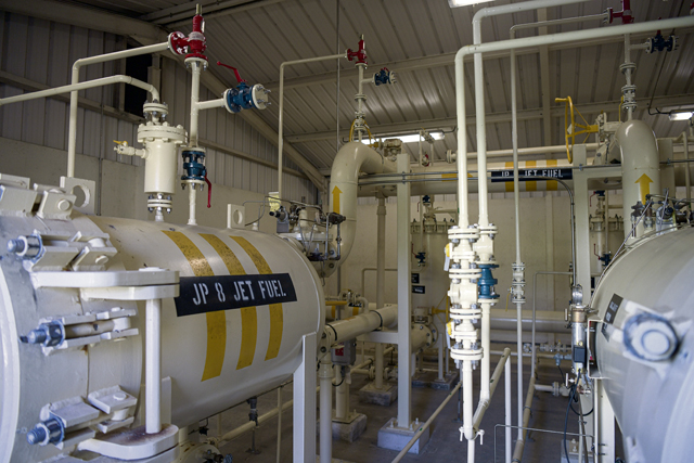 A fuel filtration system prepares fuel for the storage tanks at Lajes Field, Portugal, Oct. 18, 2022. U.S. Air Force Airmen are responsible for offloading, processing, and storing fuel in the tanks, which are capable of holding 38 million gallons of fuel. (U.S. Air Force photo by Airman 1st Class Lauren Jacoby)