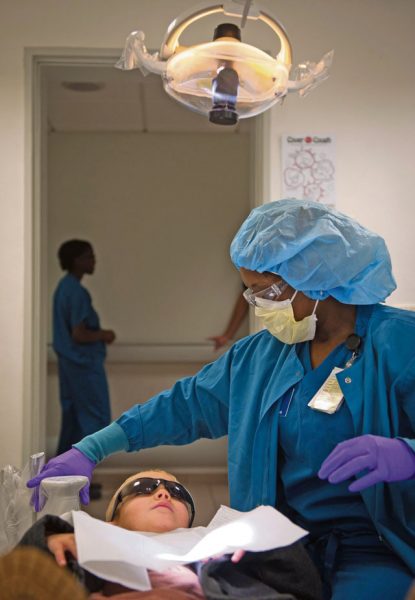 Emma LeNeave receives a teeth cleaning during the 86th Dental Squadron’s “Little Teeth, Big Smiles” event Nov. 5 on Ramstein. Children up to 10 years old were encouraged to attend the event with their parents.