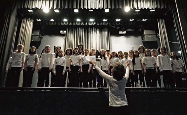 Members of the Ramstein Intermediate School Choir sing “Lift Every Voice and Sing” during a Martin Luther King Jr. Day remembrance celebration Jan. 16 on Ramstein. During the program, King’s memory was honored and remembered through poem, song and words from Chief Master Sgt. James E. Davis, U.S. Air Forces and Air Forces Africa command chief.