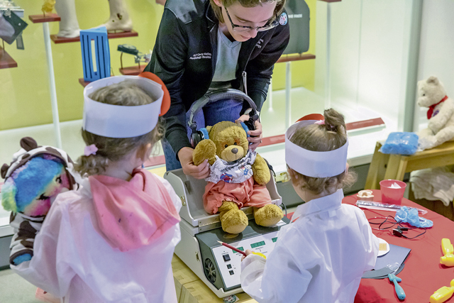 By dressing and acting like a doctor, and other medical professionals, with their stuffed friends, the museum hopes to develop early inspiration in considering a field in medicine. One museum visitor said, “My favorite part was seeing doctors tell my girls if you can dream it, they can be it.”
