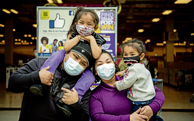 U.S. Air Force Senior Airman Jessica Patterson, 86th Communications Squadron cybersecurity technician, leans closer to her family for a Month of the Military Child initiative while visiting the Base Exchange at Ramstein Air Base, April 14. Patrons at the Base Exchange were asked to participate in a photoshoot highlighting local military dependents. Established in 1986, Month of the Military Child celebrates the resiliency of military connected children across the Department of Defense.