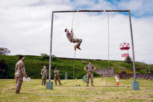 (Left) Defenders from the 65th Air Base Squadron Security Forces Flight and the Portuguese Air Force came together at Lajes Field to celebrate National Police Week. The event featured an obstacle course, fostering camaraderie and teamwork between the allied forces.