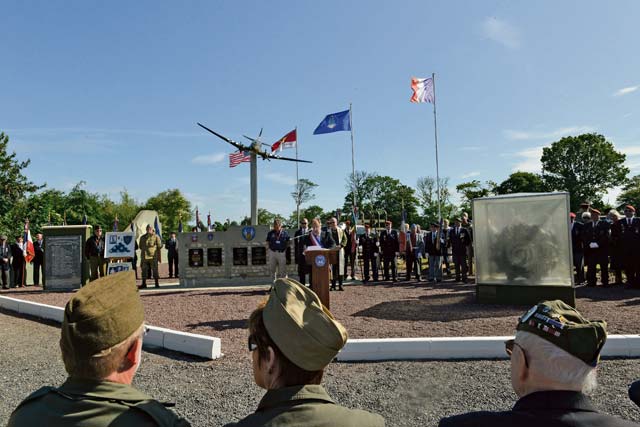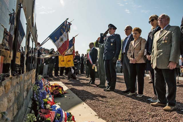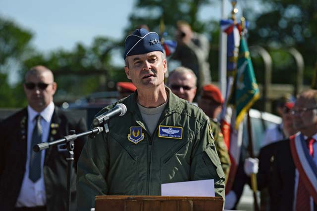U.S. Air Force Lt. Gen. Darryl Roberson, 3rd Air Force and 17th Expeditionary Air Force commander, speaks during a memorial ceremony at the Picauville 9th Air Force monument. The task force, based in Saint Mere Eglise, France, supported local events across Normandy June 2 through June 8 to commemorate the selfless actions of the Allies on D-Day that continue to resonate 71 years later.