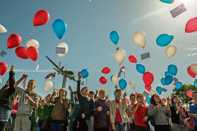 French children let balloons soar into the sky to celebrate the service of the U.S. military during D-Day.