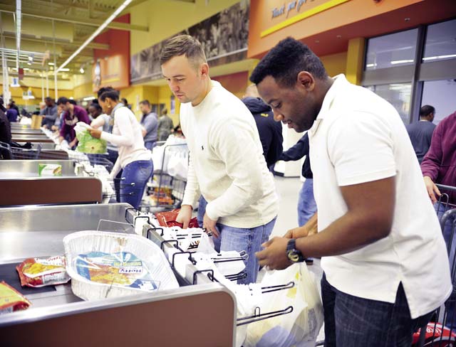 Kaiserslautern Military Community first sergeants held a voluntary commissary bagging event in support of Operation Warm Heart Nov. 22 and 23 at the Ramstein Commissary.