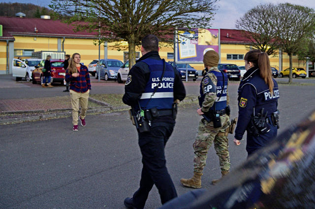 U.S. Force Police and German Polizei approach someone that left their car unlocked during Operation Opportunity Leads to Theft at Otterbach, Germany Nov. 24. The German Polizei stations in Kaiserslautern stated to residents to make sure that vehicles are locked even in personal driveways. Thieves prefer to check cars under the cover of darkness in the driveway.