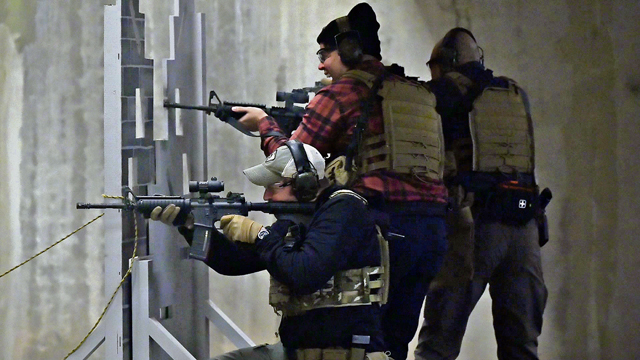 The main activities of the engagement were spread out through three days. On the first day, the two groups practiced VIP protection strategies at the Combat Arms Training and Maintenance facility. The groups fired different types of guns, progressing from M-11s to MP-5 and M-4s.