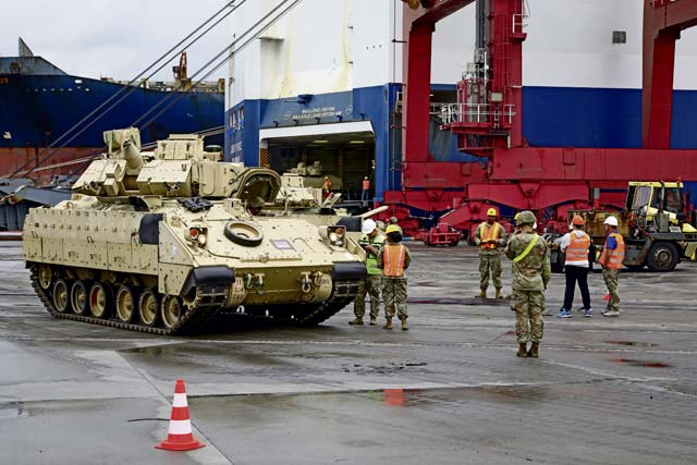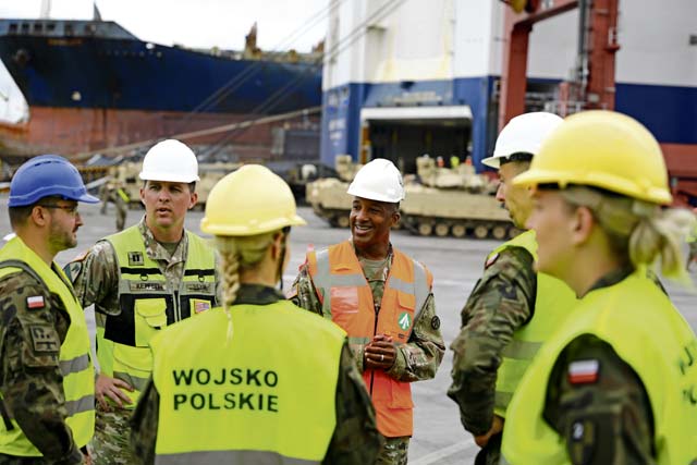For the 598th SDDC and 21st TSC this provides an opportunity to showcase the team’s increasing capabilities to bring equipment into the port of Gdansk. Moreover, the vessel discharge and onward movement operations in support of this Atlantic Resolve iteration reflect the Army’s ability to use strategically located seaports throughout Europe and transport equipment rapidly across the theater. In addition to the operation in Gdansk, 1st ABCT, 1ID equipment will arrive at ports in Gdynia, Poland; Klaipeda, Lithuania, and Alexandroupoli, Greece. Diversifying the number and location of ports able to support the movement of Army forces provides additional maneuver options for regional commanders and enhances critical logistics and transportation relationships with allies and the commercial industry