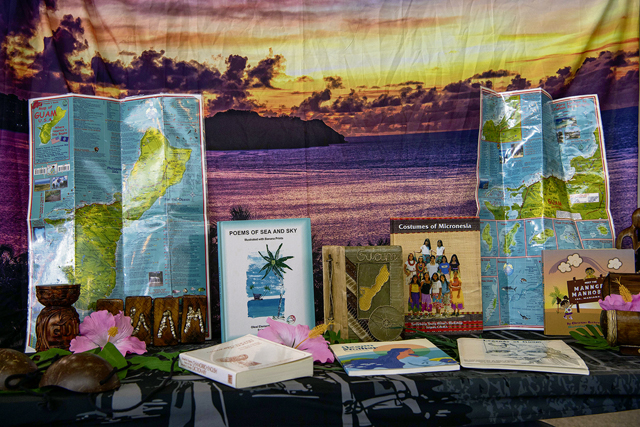 A cultural stand representing Guam is set up at an Asian American and Pacific Islander Heritage Month closing ceremony at Ramstein Air Base, Germany, May 31, 2024. The closing ceremony, which included people from around the Kaiserslautern Military Community, was held as a final commemoration of AAPI month. The ceremony consisted of multiple traditional dances, stands with information on different Asian cultures and people eager to tell stories about their heritage. (U.S. Air Force photo by Airman 1st Class Trevor Calvert)