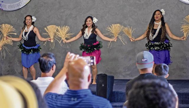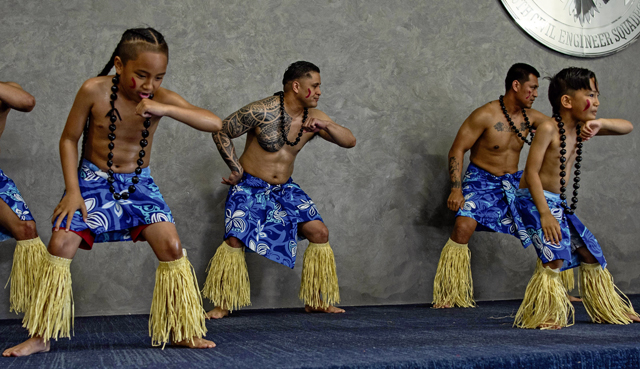 Dancers perform the tutuki during the Asian American and Pacific Islander Heritage Month closing ceremony at Ramstein Air Base, Germany, May 30, 2023. The tutuki, a traditional Tahitian dance, was one of many dance performances celebrating the diverse AAPI cultures represented by Team Ramstein. (U.S. Air Force photo by Staff Sgt. Emmeline James)