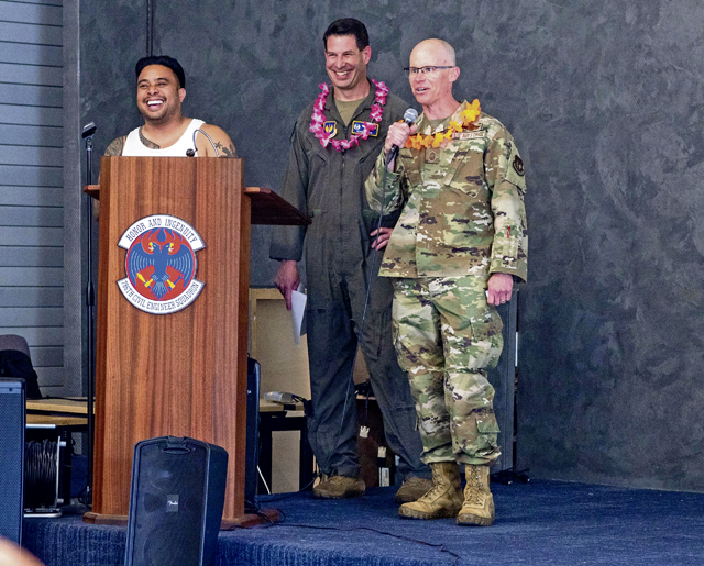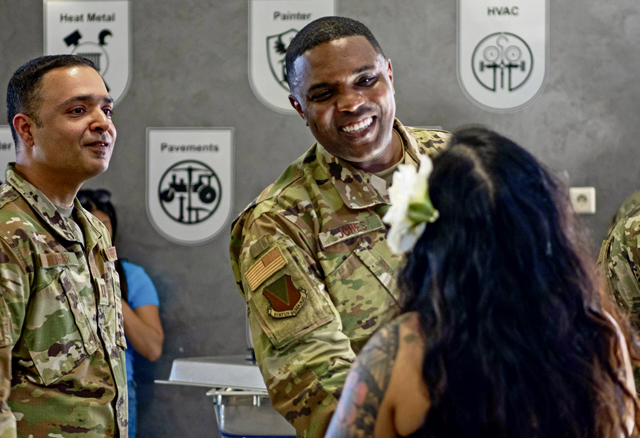 U.S. Air Force Brig. Gen. Otis C. Jones, 86th Airlift Wing commander, greets a performer at the Asian American and Pacific Islander Heritage Month closing ceremony at Ramstein Air Base, Germany, May 30, 2023. Multiple events including an opening ceremony, softball pickup games and reading of cultural stories at Vogelweh Air Station library were hosted throughout May to celebrate the diverse cultures of AAPIH. (U.S. Air Force photo by Staff Sgt. Emmeline James)