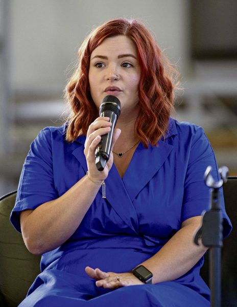 Mariah Chatham, storytellers event speaker and military spouse, shares her story during a storytellers event at Ramstein Air Base, Sep. 27. Storytellers is a yearly event that gives people from around Ramstein AB a platform to share their stories of hardship. Chatham hopes that by telling others about the hardship she has faced, they will feel empowered to speak up about the problems they are going through.