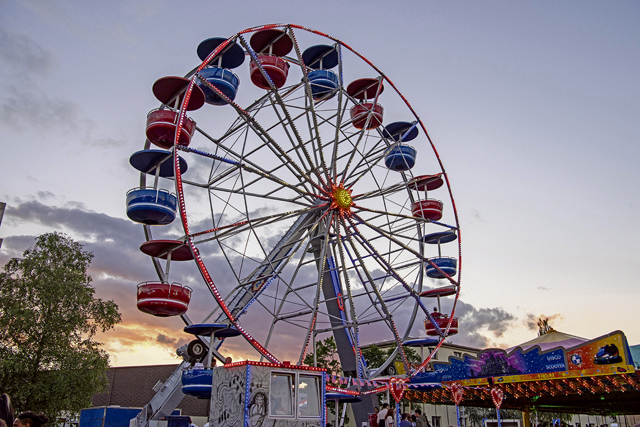 Freedom Fest attendees ride a ferris wheel at Ramstein Air Base, Germany, July 4, 2024. The two-day festival was held in celebration of Independence Day and included carnival rides, games, food vendors, live musical entertainment and a fireworks show. (U.S. Air Force photo by Senior Airman Brenden Beezley)