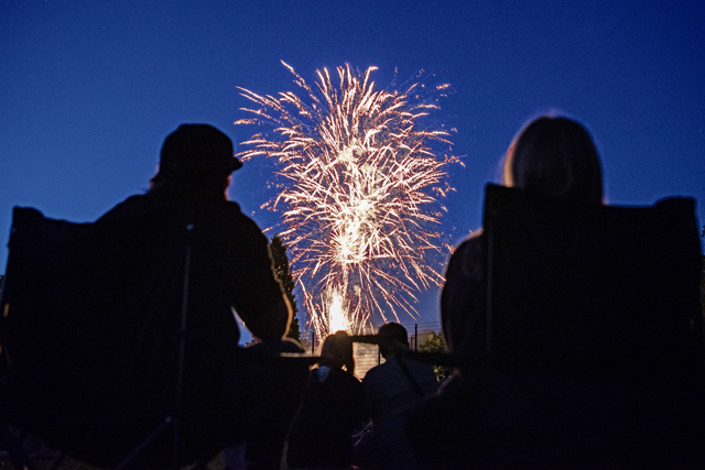 Freedom Fest attendees watch a fireworks show at Ramstein Air Base, Germany, July 4, 2024. The two-day festival was held in celebration of Independence Day and included carnival rides, games, food vendors, live musical entertainment and a fireworks show. (U.S. Air Force photo by Senior Airman Brenden Beezley)