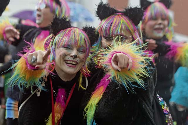 People march through the parade during Fasching in Ramstein-Miesenbach, Feb. 25. Origins of Fasching can be attributed to pagan times when people used celebrations to drive out the evil spirits of winter and encourage the coming of spring and good crops.