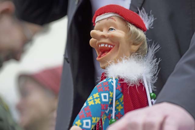 Ralf Hechler, Ramstein-Miesenbach union community mayor, holds a jester as part of a Fasching parade in Ramstein-Miesenbach, Feb. 25. People of all ages and backgrounds come together during Fasching, a festival held throughout Europe, to celebrate the coming of warmer weather.