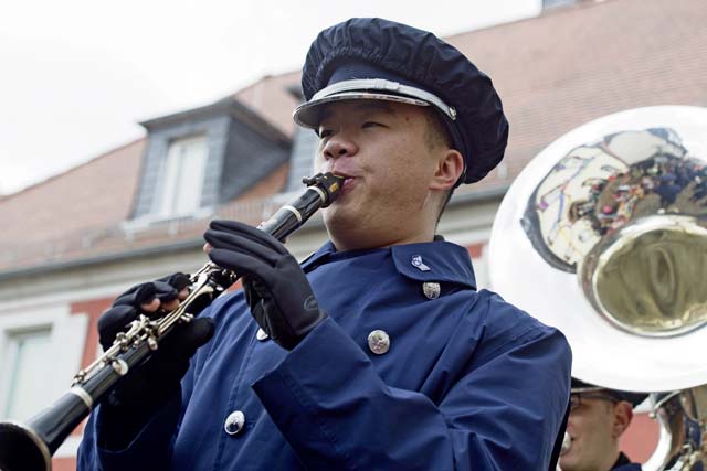 A member of the United States Air Force in Europe-Air Forces Africa band plays a clarinet during Fasching, in Ramstein-Miesenbach, Feb. 25. The first celebration of Fasching, or Karneval, was held in 1341 in Cologne, Germany.