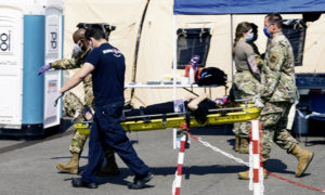 After the delivery, the mother and child were safely settled into the back of the ambulance, secured and monitored, then transported to LRMC. While the healthy mother and daughter recover, the experience has left a lasting impression on many U.S. service members participating in this humanitarian airlift effort.