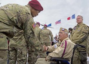 Towards the ceremony’s conclusion, U.S. Army Airborne infantrymen expressed their gratitude to the U.S. D-Day liberators who attended the ceremony. Some then proceeded to swap patches with German Airborne infantrymen as mementos to mark the commemorations. These acts evidenced two ideas: the cost of freedom will never be forgotten and the enemy of yesterday is the friend of today.