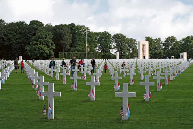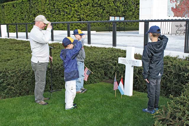 Cub Scouts from Pack 243 render a salute to the grave of Gen. George S. Patton at the Luxembourg American Cemetery and Memorial May 26. More than 100 Cub Scouts and family members from around Germany gathered to pay tribute to the men and women who paid the ultimate sacrifice.